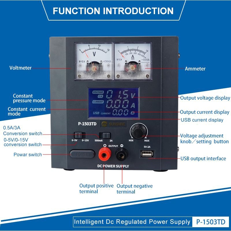 DC POWER SUPPLY / POWER SUPPLY SUNSHINE P-1503TD 3 AMPERE