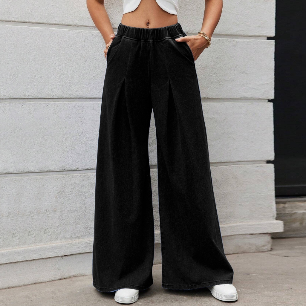 Jeans Baggy Style Cutbray Wanita Wide Leg Vogue Denim Pants Perempuan Pinggang Getah Straight Cut Loose Jeans