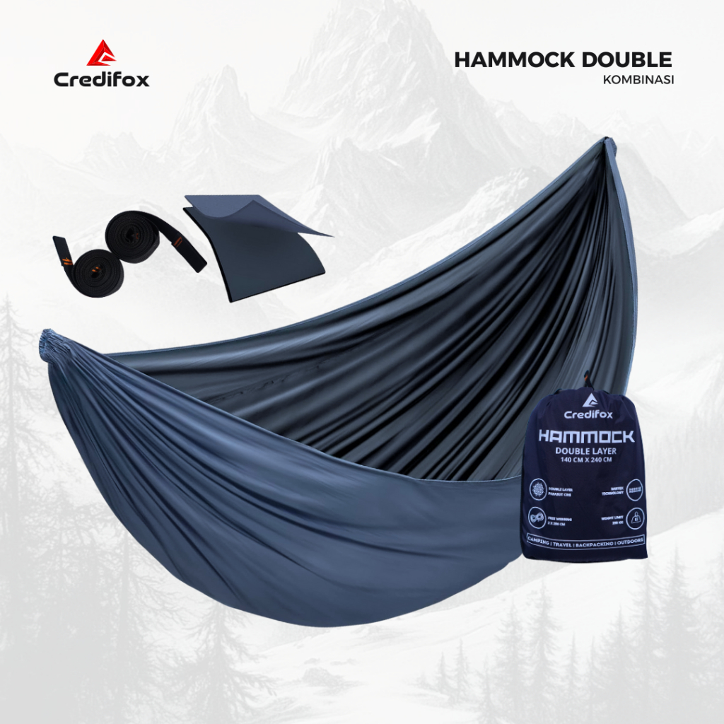 CREDIFOX Hammock Double Layer Ukuran 140cm x 270cm - Ayunan Camping - Tempat Tidur Gantung - Hamock Outdoor