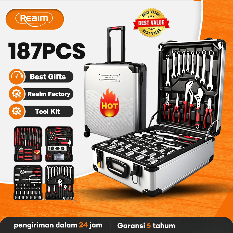 Reaim Tool Kit 187 PCS Perkakas Bengkel Dan Rumah Koper Lengkap Bahan Kuat