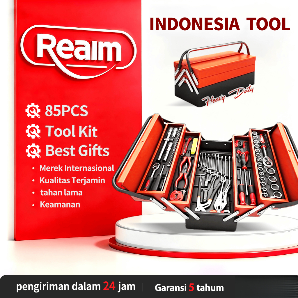 Reaim Tool Kit 85 Pcs Alat Bengkel Tool Kit Kunci Sok Set Pekerjaan Otomotif Pekerjaan Mobil Hand Toolset / Tool Kit Set
