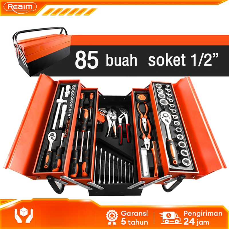 REAIM Tool Kit 85 Pcs Alat Bengkel Tool Kit Kunci Sok Set Alat Bengkel Tool Kit Pekerjaan Otomotif Tool Set/ Tool Kit Se