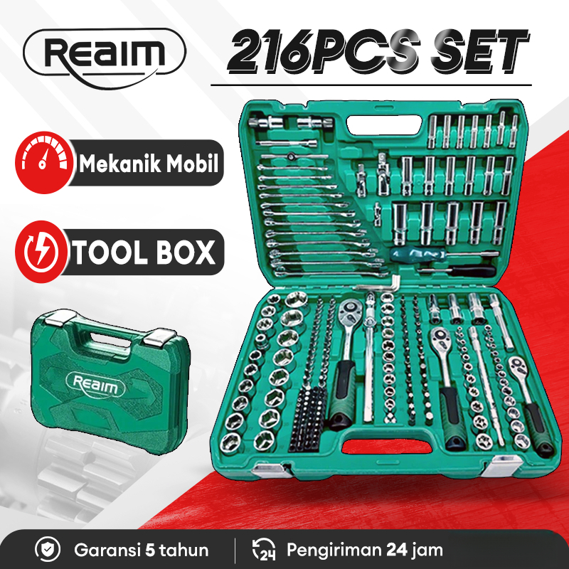 Reaim Kunci Set Lengkap 216 PCS Set Kunci Shock Set Kunci Inggris Tool Box Set Lengkap Kunci Shock