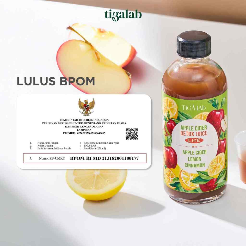TIGALAB Apple Cider Detox Juice - Minuman Detox Cuka Apel, Lemon, Kayu Manis, dan Sari Kurma (Tanpa Gula) - 1 Botol