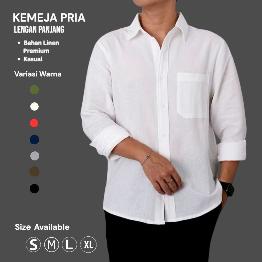GOODSOFT.ID Long Sleeve Linen Shirt | Kemeja Polos Linen Pria Lengan Panjang | 91