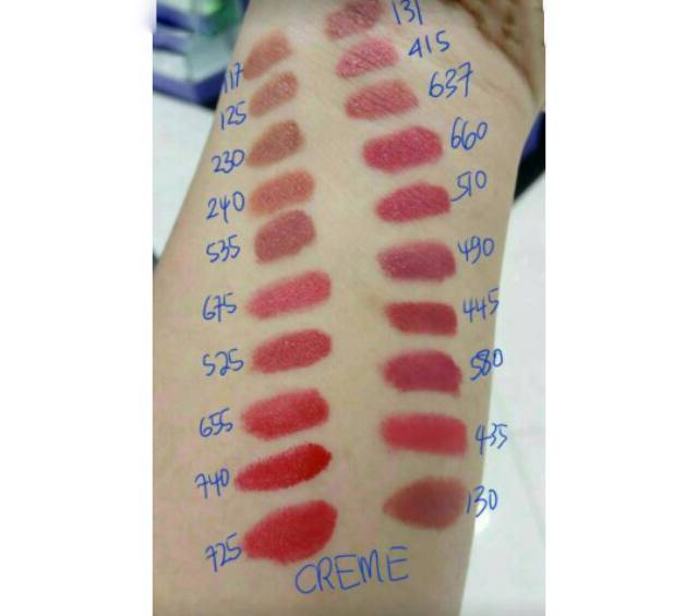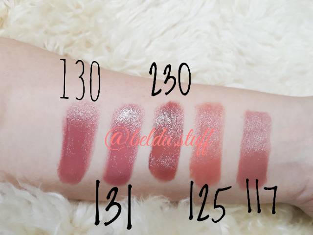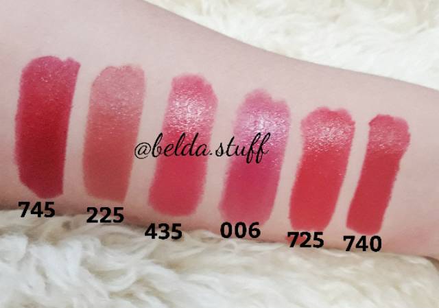 117.Almost Nude, 535.Rum Raisin, 130.Rose Velvet, 131.Ginger Rose, 240.Sandalwood Beige, 740.Certainly Red, 725.Love That Red, 415.PinkTheAfternoon, 435.Love That Pink, 637.Blushing Rose