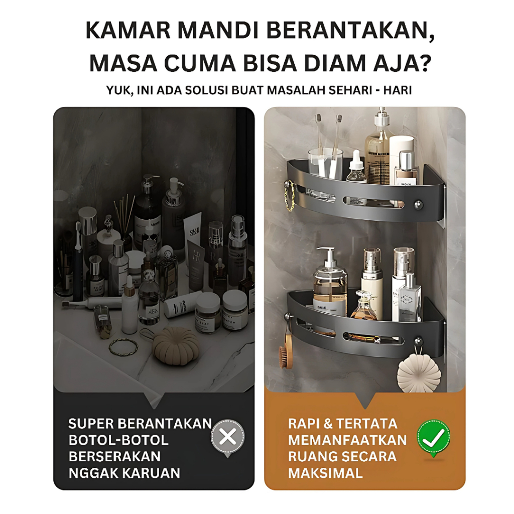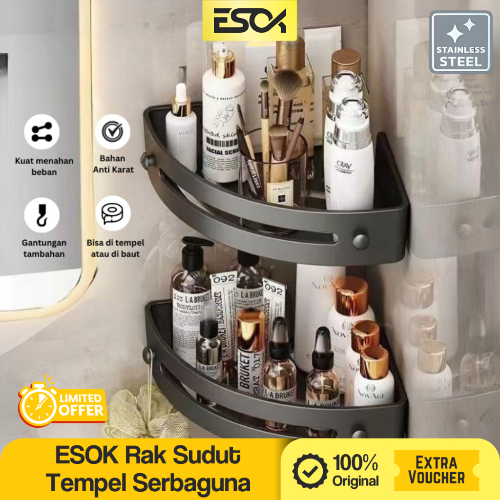 ESOK Rak Sudut Kamar Mandi Triangle Rak Susun Serbaguna Sudut Rak Toilet Plastik Premium
