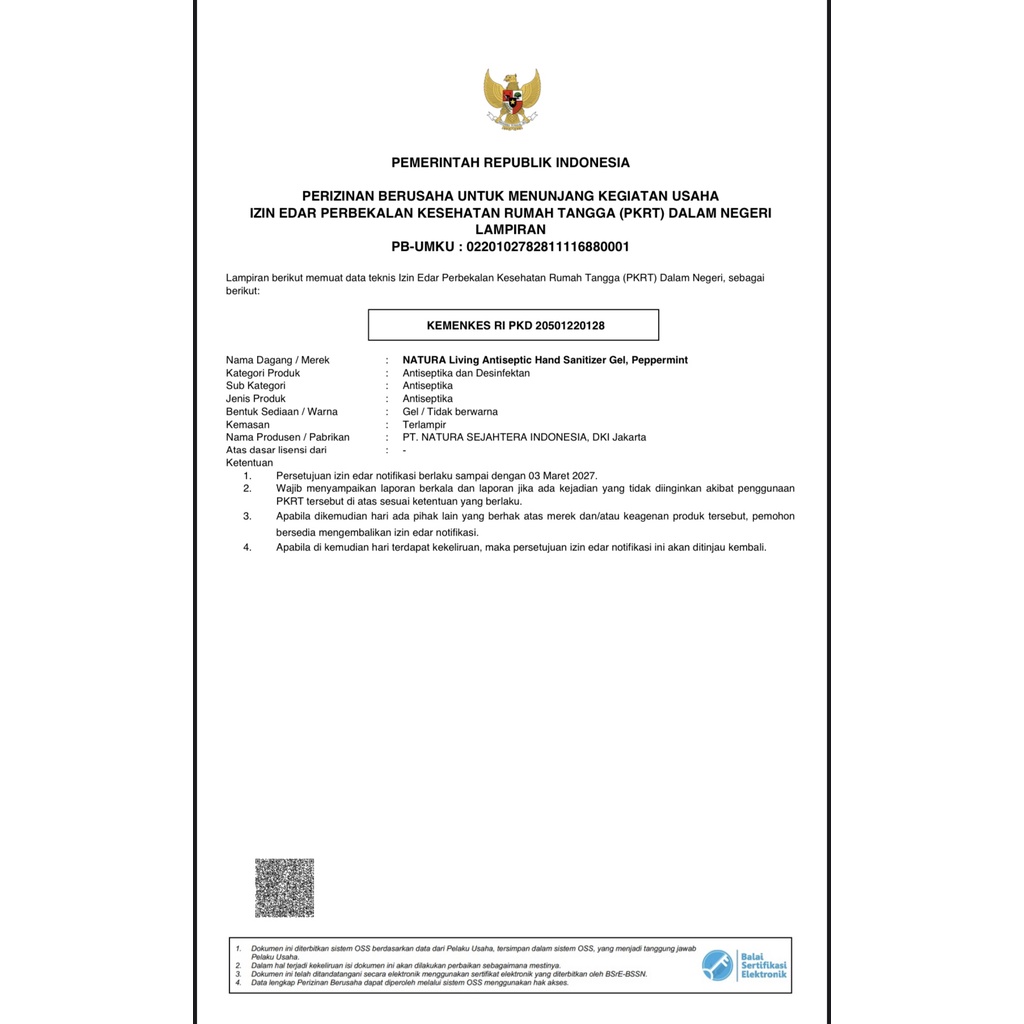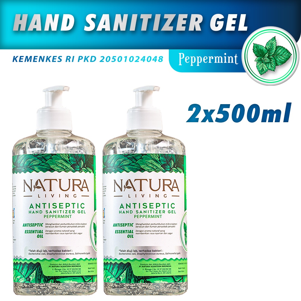 NATURA Hand Sanitizer Gel 500 ml x 2 (Twinpack)Peppermint Handsanitizer Gel Pump (Paket isi 2)