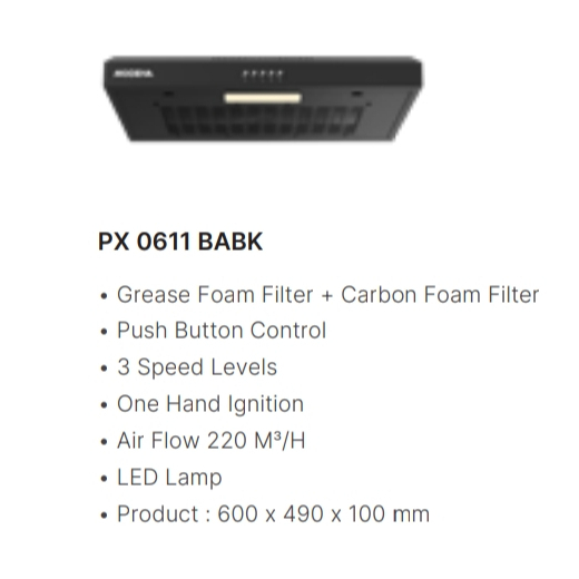MODENA SLIM HOOD - COOKER HOOD PX 0611 BABK 60CM FULL BLACK