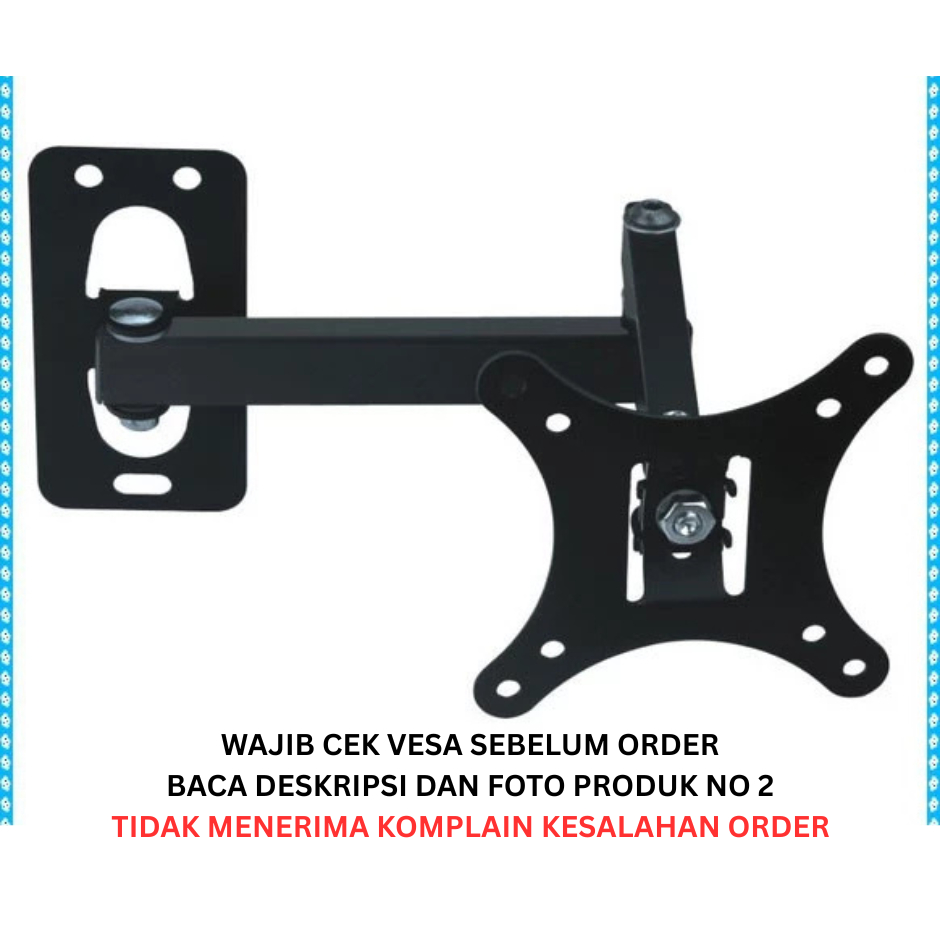 Bracket TV LCD LED Telescopic 10 17 19 20 21 22 24 26 32 Inch VESA 7,5 DAN 10 CM Taffware X100A