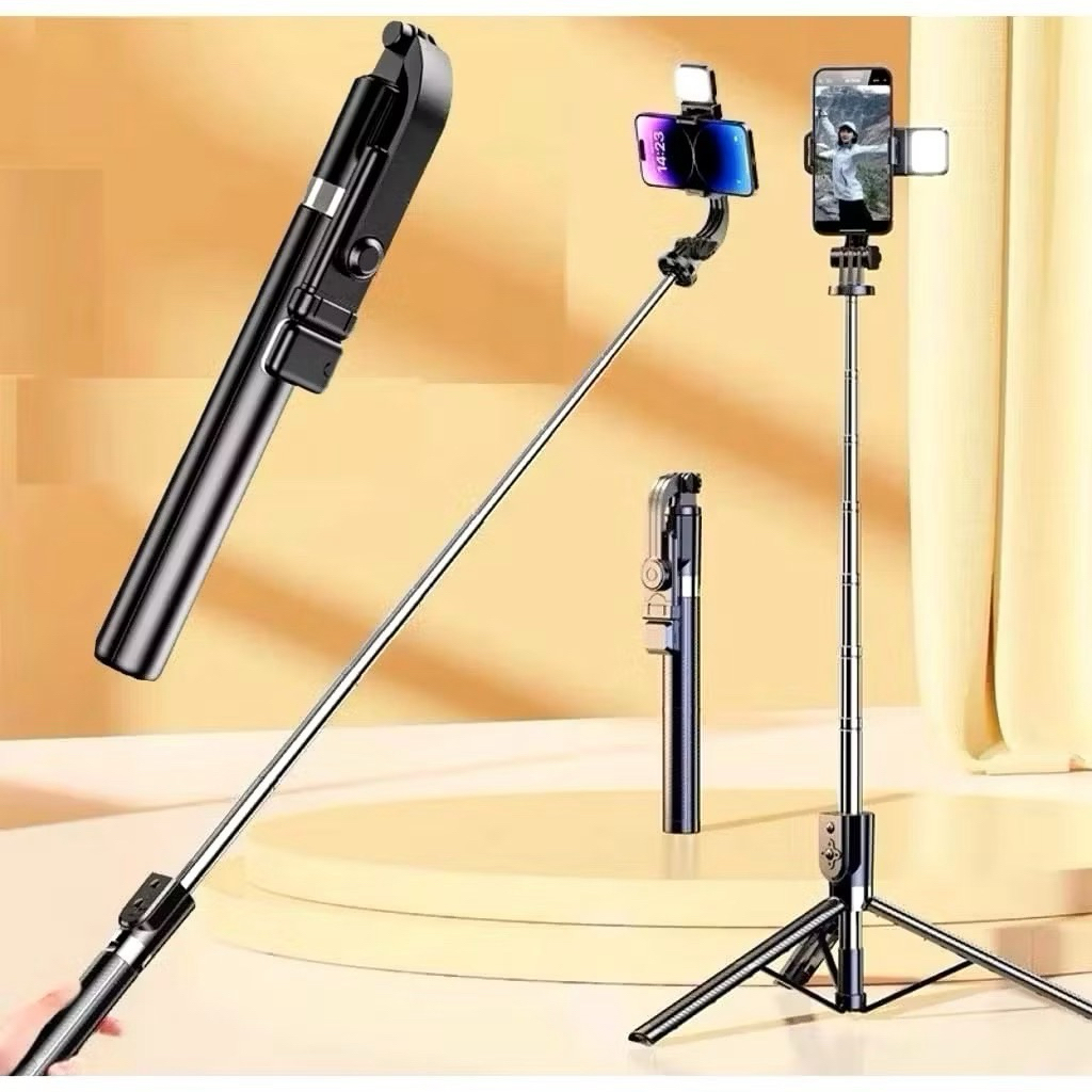 R1S-L 170CM 4in1 Tongsis + Tripod + LED Lampu Selfie + Remote Bluetooth Tongkat Stick 360° 1.7M