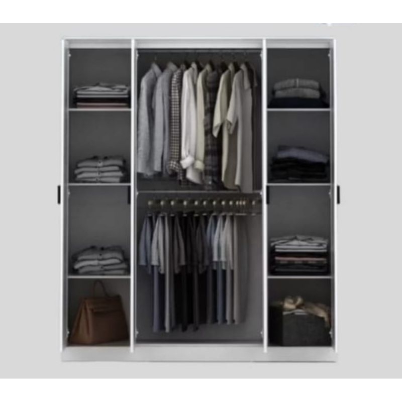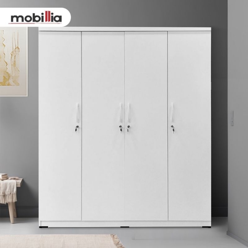 lemari pakaian 4 pintu putih modern minimalis 2 cermin 4 laci penyimpan