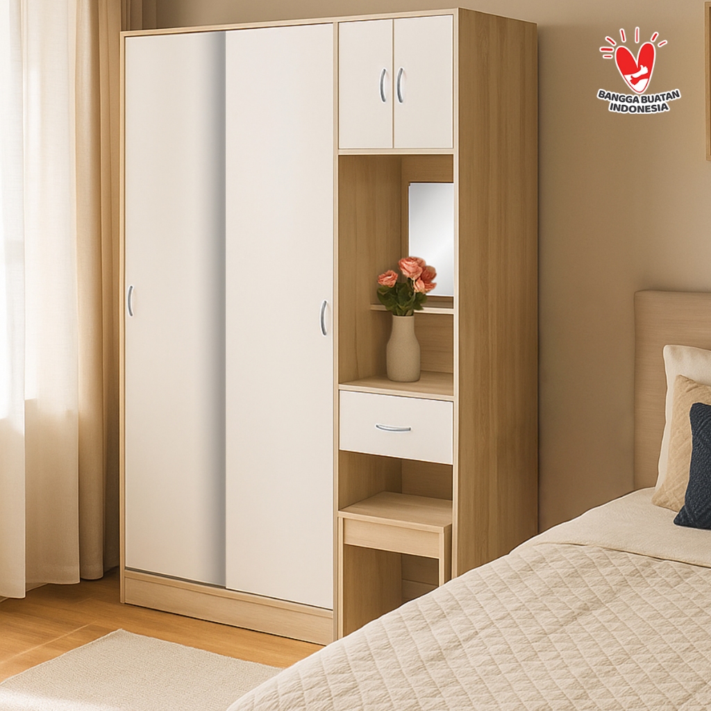 Harvest Furniture Lemari Sliding Elegan + Meja Rias + Kaca
