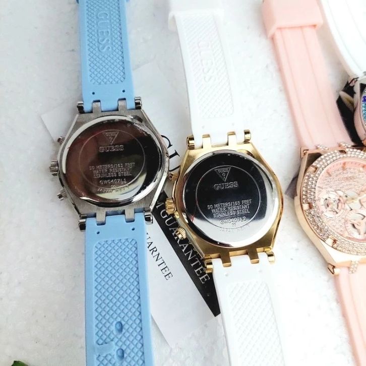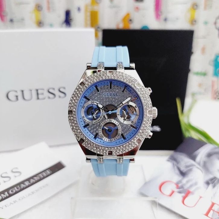 JAM TANGAN WANITA GUESS HEIRESS GW0407L1 SILVER BLUE RUBBER FREE ONGKIR - FREE BOX ORIGINAL