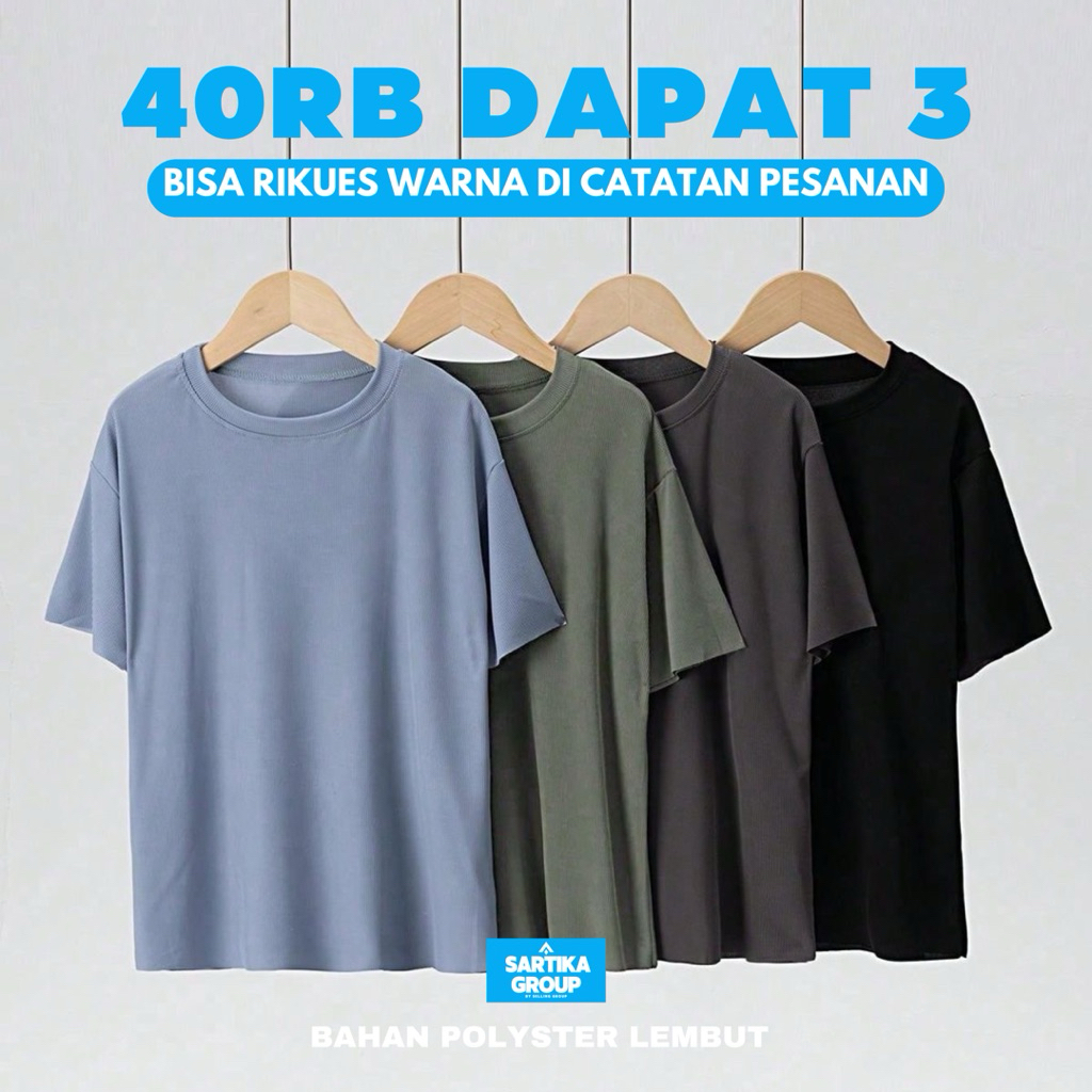 Paket 40RB Dapat 3 PCS Kaos Polos Lengan Pendek Pria Wanita Termurah