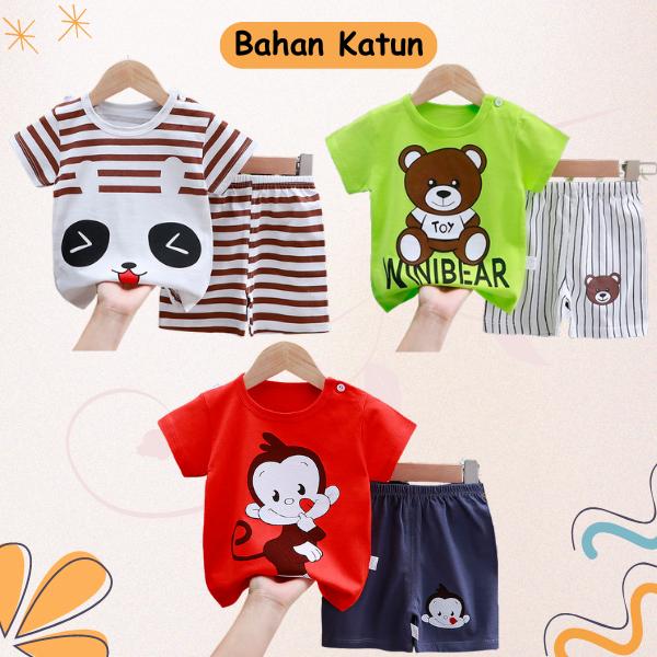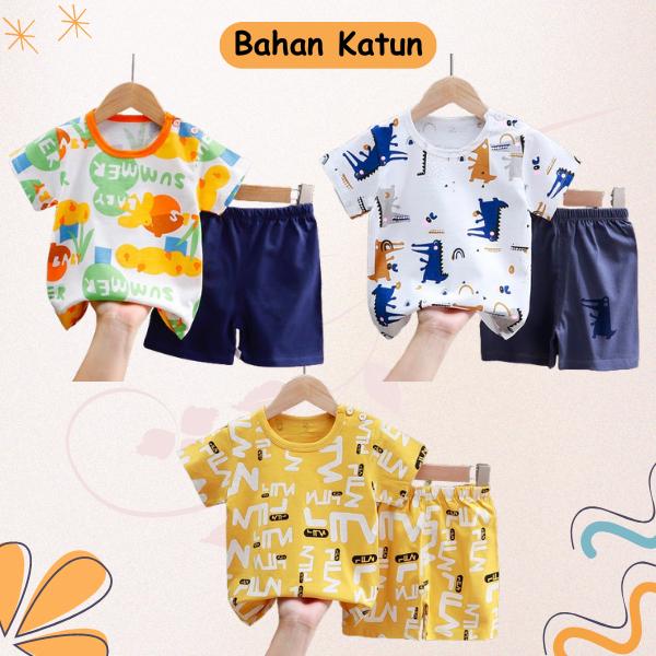 Uniwear Paket Hemat 3 Setelan Anak Baju Bayi Lengan Pendek Umur 0 6 Tahun - Paket 029, 90 1-2Thn