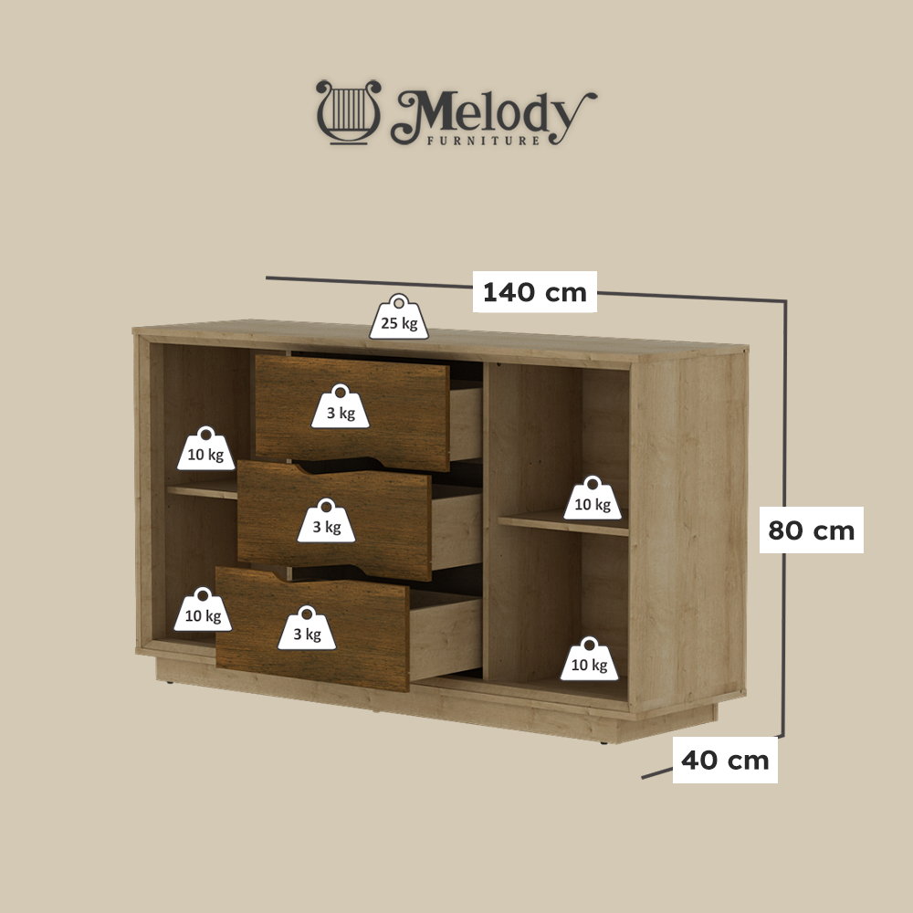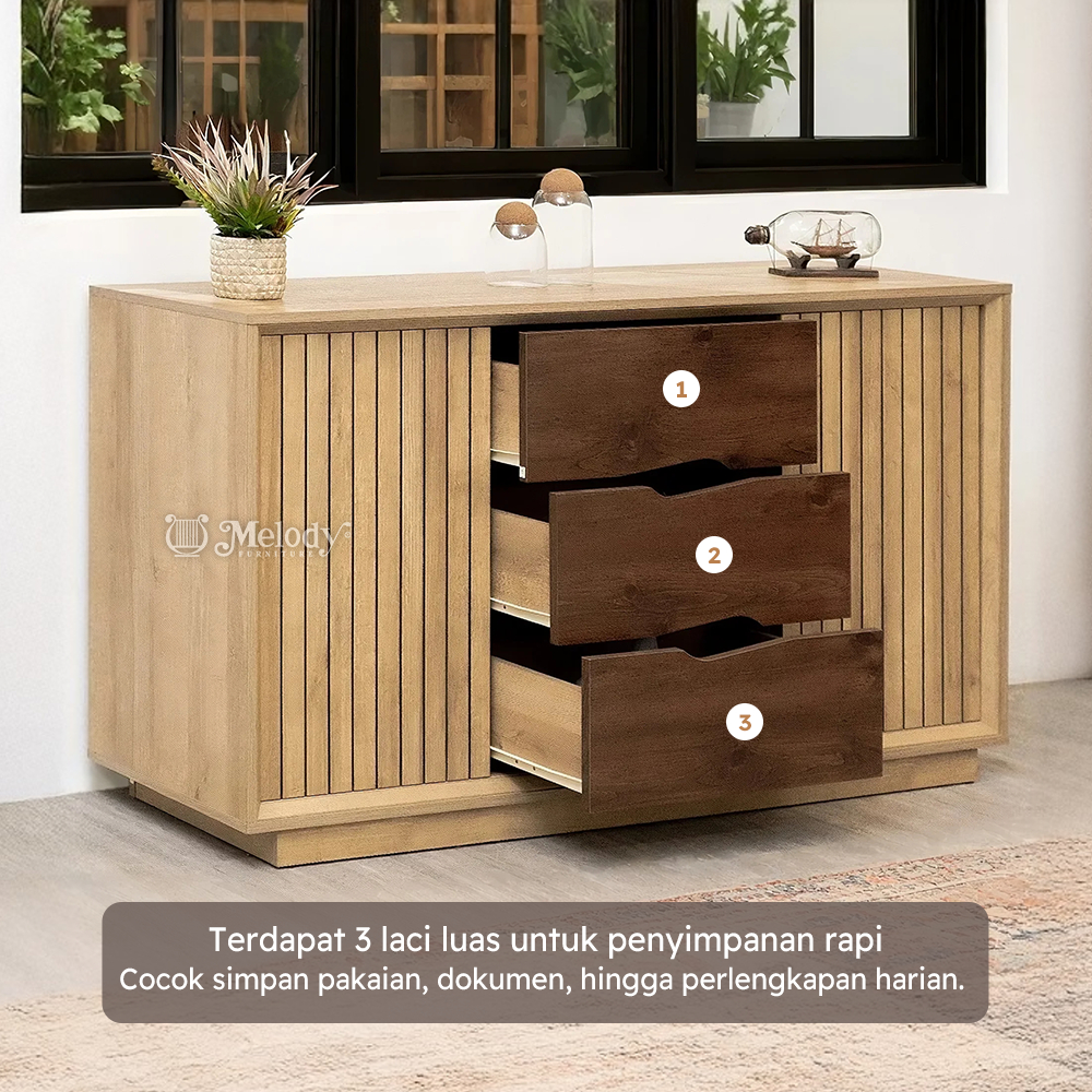 Melody Furniture - Buffet Lemari Serbaguna Credenza Japandi Estetik - RYUKI SIDEBOARD 140 cm