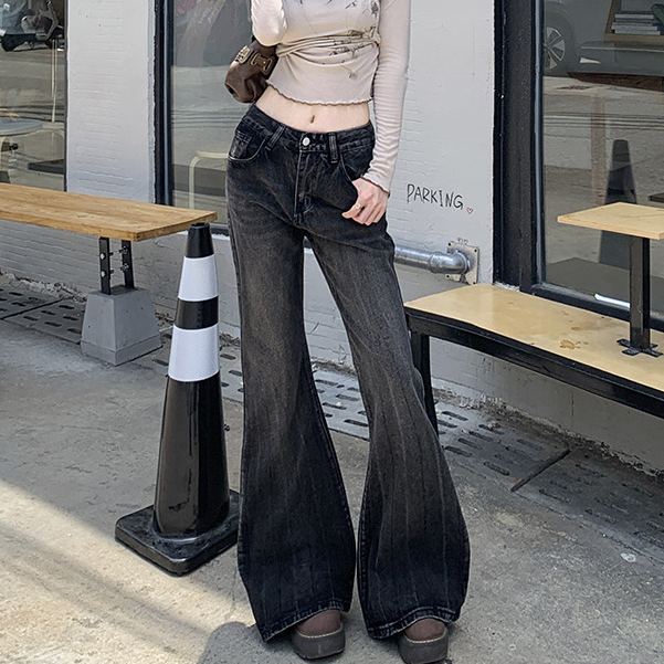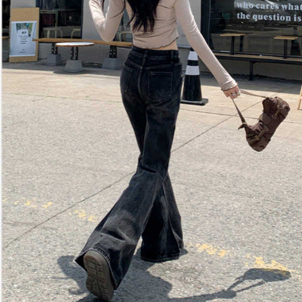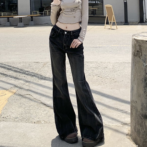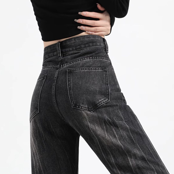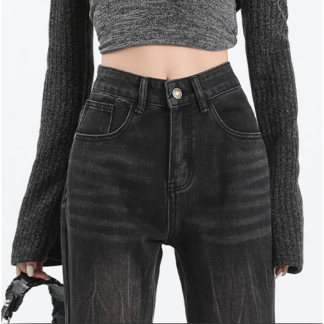 GDTIMA Celana Jeans Wanita Retro Highwaist Loose Kekinian Kaki Lebar Celana Denim