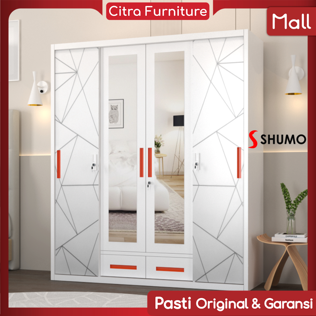 Citra Furniture SHUMO ® Lemari Pakaian Besi 4 Pintu Sliding Minimalis |Lemari Baju sleding laci CTR1
