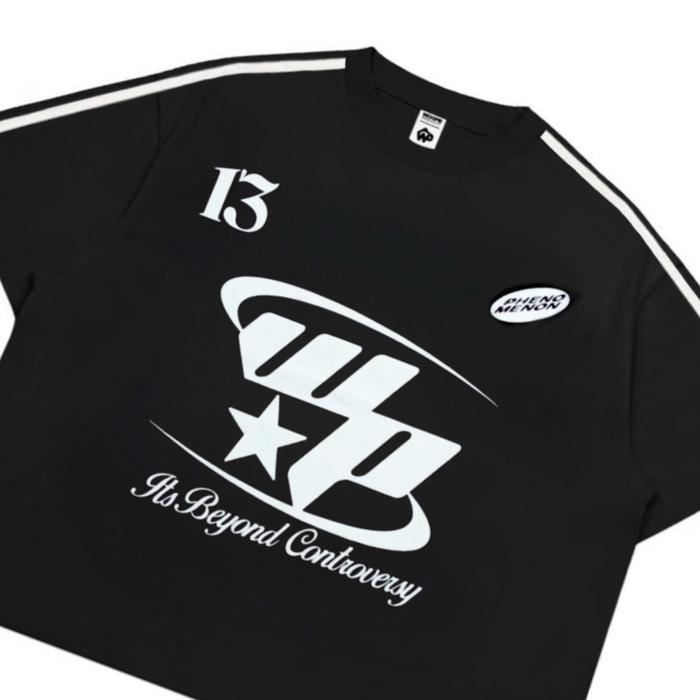 Boxy Fit Crop T-Shirt Oversize Pria Dewasa Woopie Project Hitam Stripe Katun 20S 200Gsm Lembut | Kaos Santai Motif Keren