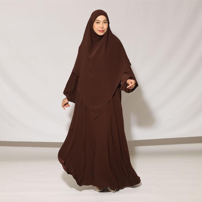 LOZY HIJAB - FATIMA ABAYA SET ABAYA SET FRENCH KHIMAR HAJI DAN UMRAH BAHAN ZAFERA ANTI UV GAMIS WANITA MUSLIM SYARI - GREY CREAM, ONE SET ABAYA