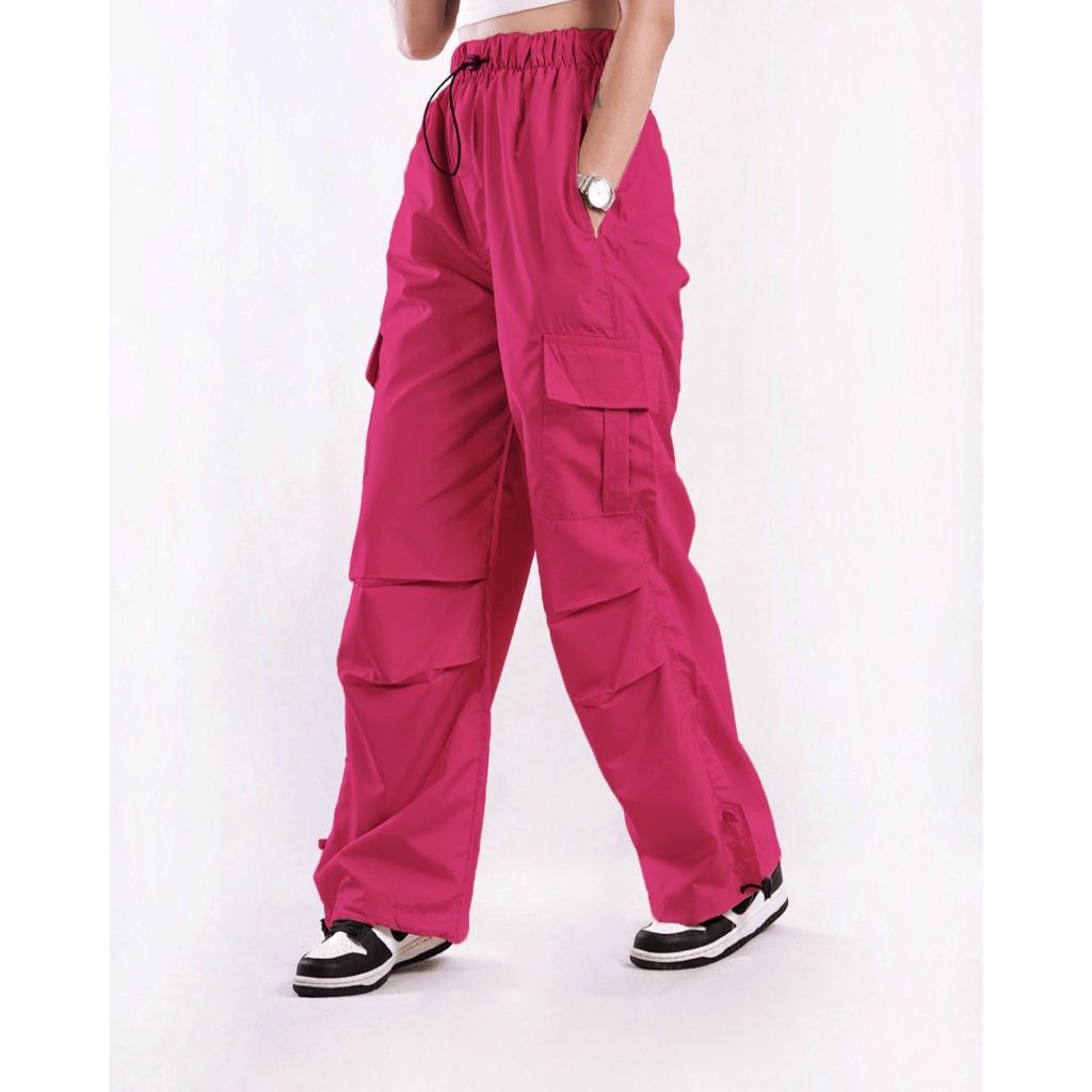 AIGO baggy cargo pants - celana cargo parasut panjang pink streetwear korean style unisex