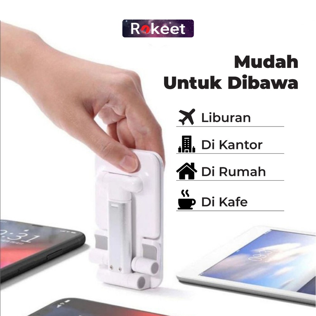 Rokeet Stand Holder HP Folding Desktop Phone Stand Lazypod Handphone Tablet Universal
