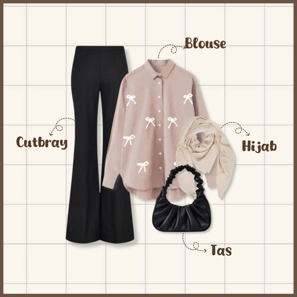 [Star] 4 In One Set Korean Style ( Tas+Bella Square+Blouse+Celana Cutbray ) Setelan Wanita Kekinian - Set AB395 Best!