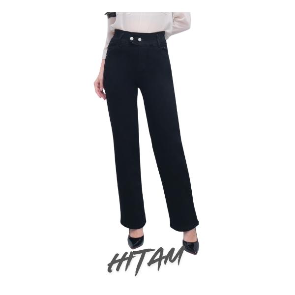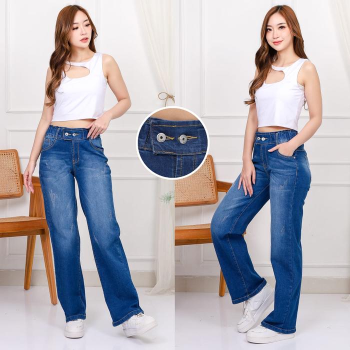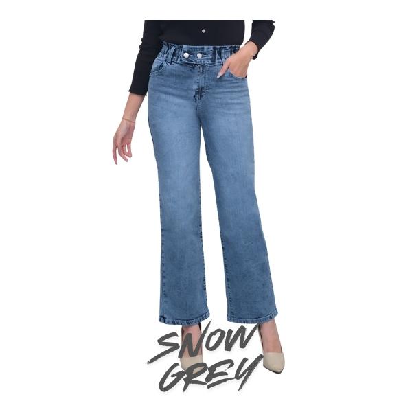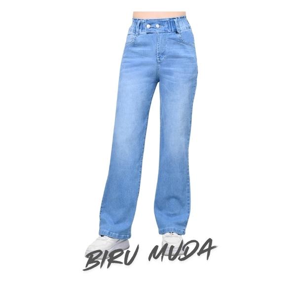 Gojeans Billie - Celana Jeans Wanita Kulot Billie Pinggang Karet Kancing 2 - Size 27-34 - Snow / Hitam / Birutua / Snow