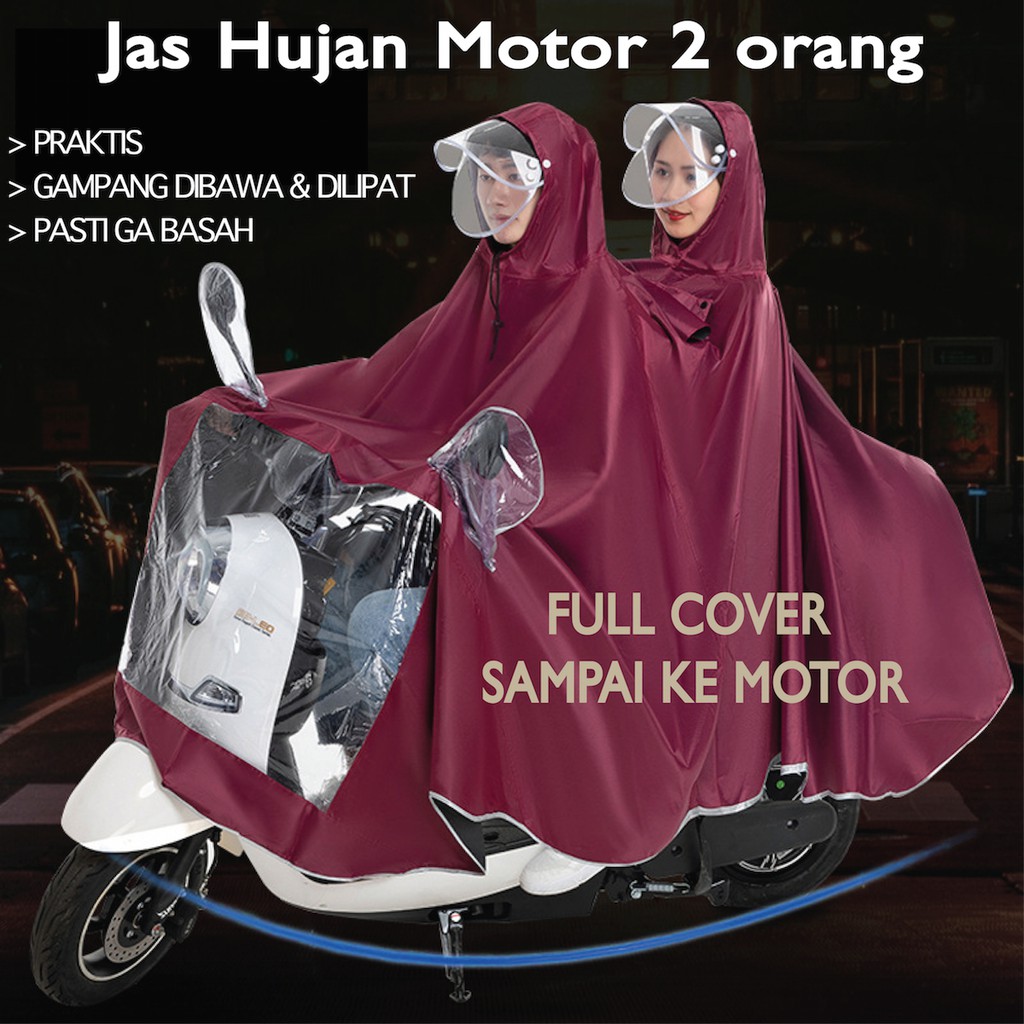 JAS HUJAN MOTOR 2 KEPALA FULL BODY MOTOR DOUBLE PONCO 2 KEPALA FULL COVER MOTOR RAINCOAT 2-in-1 COAT