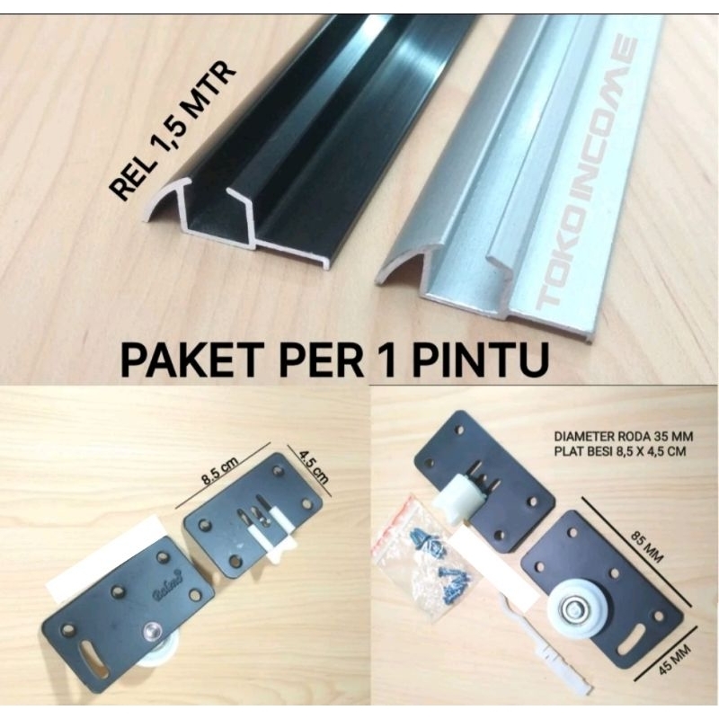 PAKET per Pintu Roda PLUS Rel Timbul 380 Lemari Sliding / Geser 1,5 M