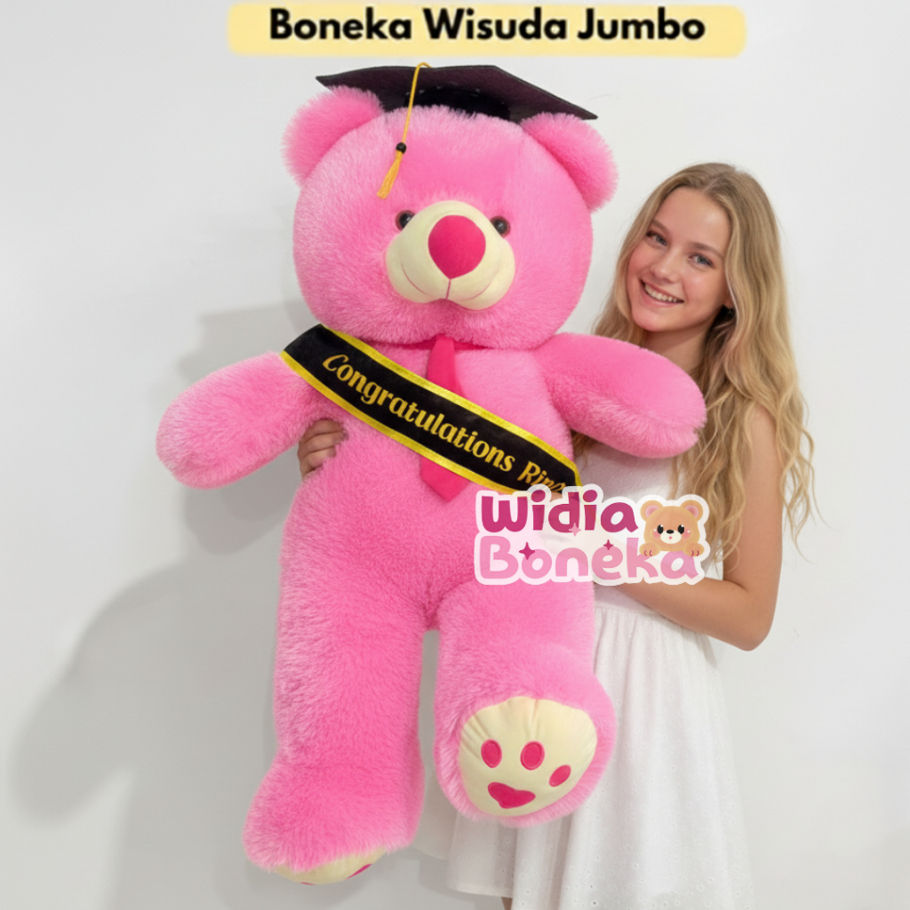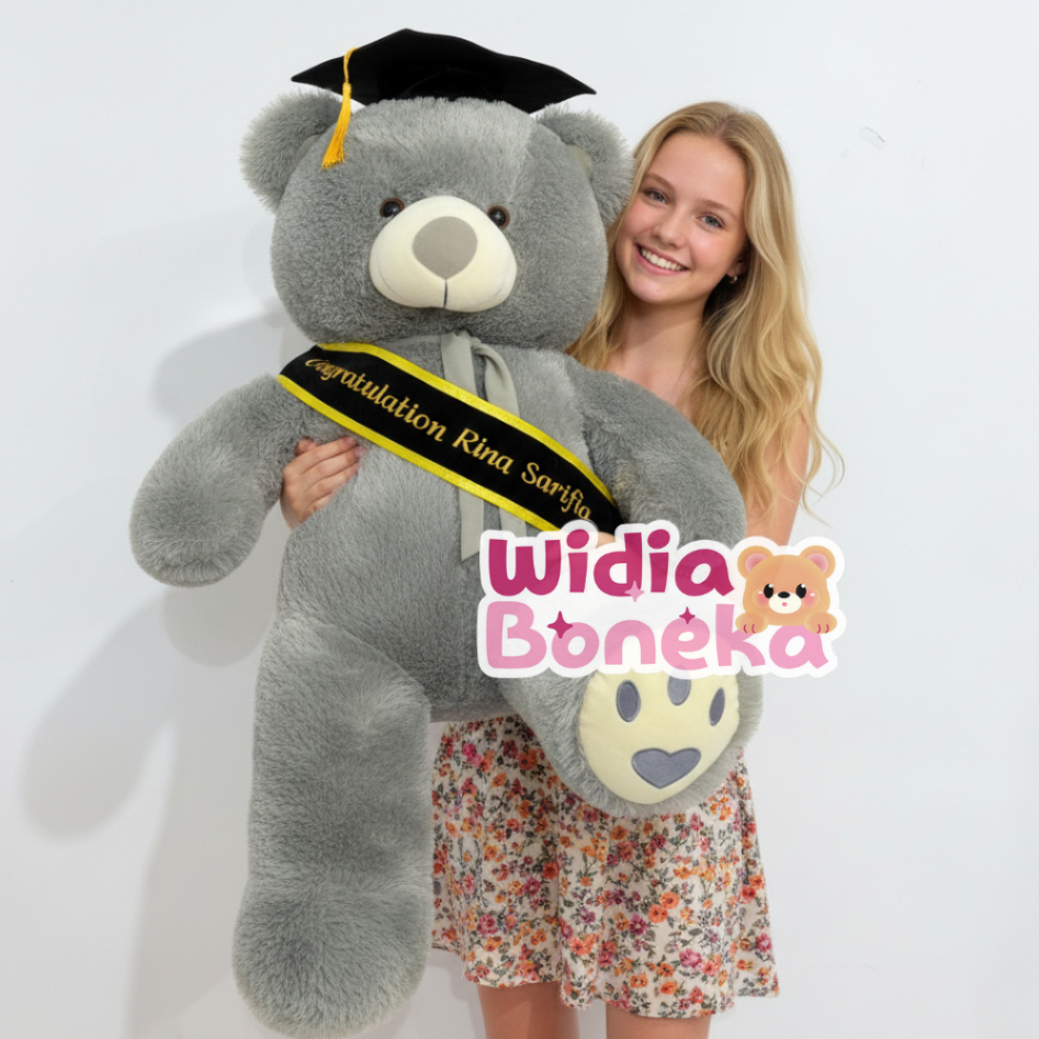 Boneka Wisuda Jumbo Bear Syal Telapak + Slempang Bordir