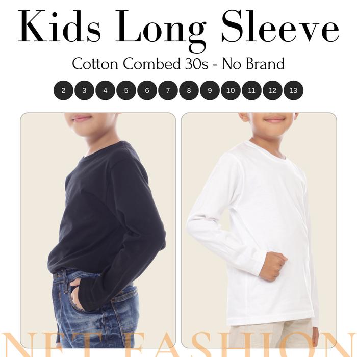 Kaos Polos Anak Lengan Panjang Cotton Combed 30S Baju Kaos Kids Size 2-13 - Black/Hitam & White/Putih - Hitam Solid, 2