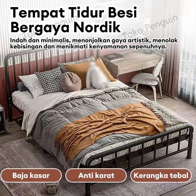 Tempat tidur Besi Dipan Minimalis Modern Rangka Tebal Kamar Tidur Kuat Tahan Lama Anti Goyah