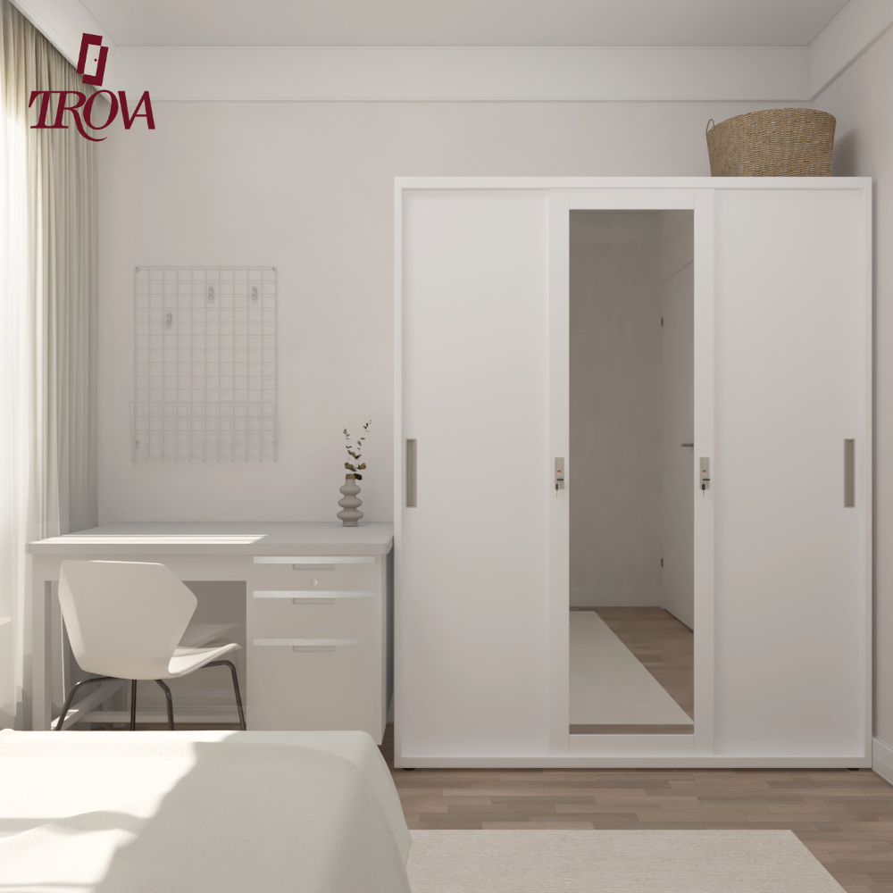 Trova Official Lemari Pakaian Besi Sliding 3 Pintu 2 hanger 150cm - Lemari Pakaian Modern Minimalis