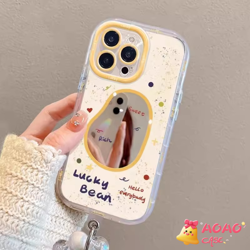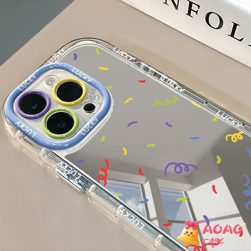 Case HP Untuk IPhone 11 15 13 Pro Max 7Plus 8Plus XR 13 6 7 8 15 14 Plus 14 12 Pro Max X XS Max 13PRO 14PRO 12PRO 15PRO Kreatif Fashion Segar Huruf Bahasa Inggris Beruntung Make Up Mirror Soft Cover
