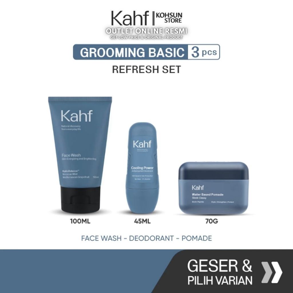 Kahf Paket Grooming Basic Isi 3 (Dapat Pomade/Hair Powder + Face Wash + Deodorant)