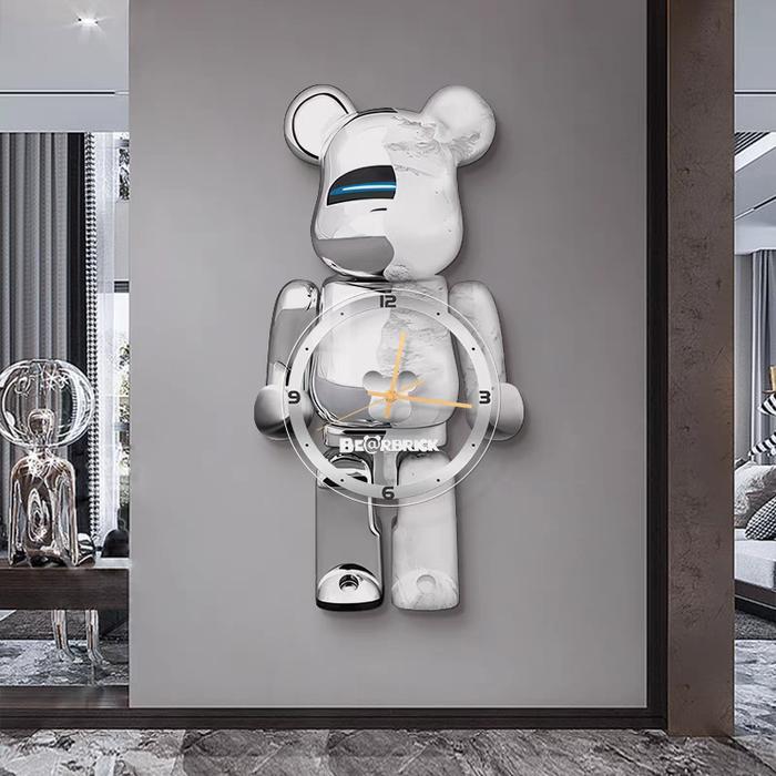 JAM DINDING PAINTING DI LAPISI PORSCELAIN ESTETIK KARAKTER BEARBRICK - PUTIH