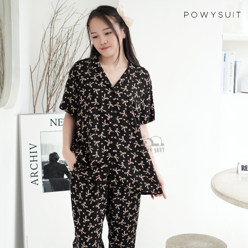 Powysuit Piyama Rayon Wanita Motif Lengan Pendek dan Setelan Celana Panjang - Baju Busui Part 3
