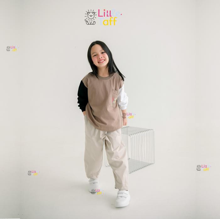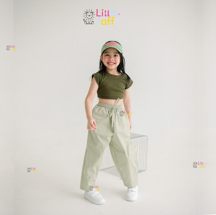 Little Taff - Celana Panjang Katun Baggy Barrel Pants Anak Perempuan Dan Laki Laki Usia 2 - 11 Tahun - Midnight Black, S