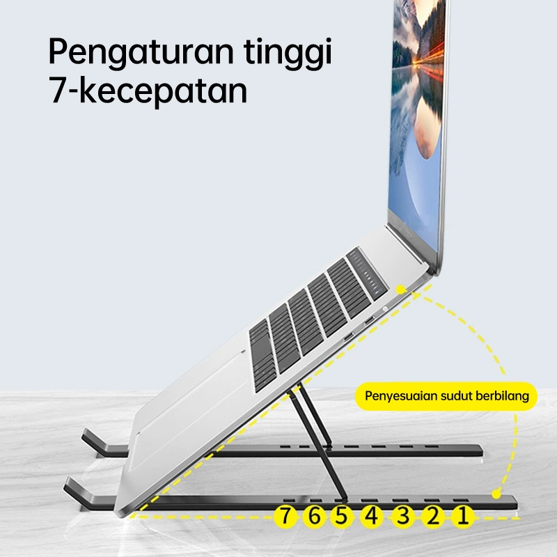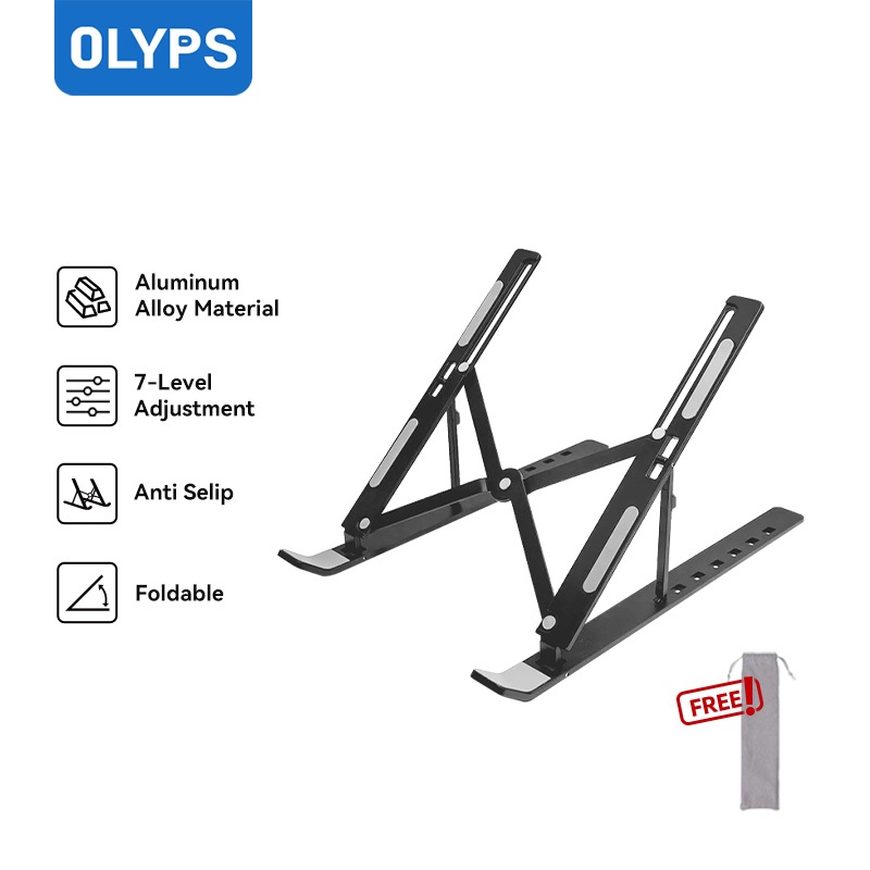 OLYPS Stand Laptop Aluminium Portable Bisa Dilipat Stand Holde Anti Slip -7 Level Angle Adjustable