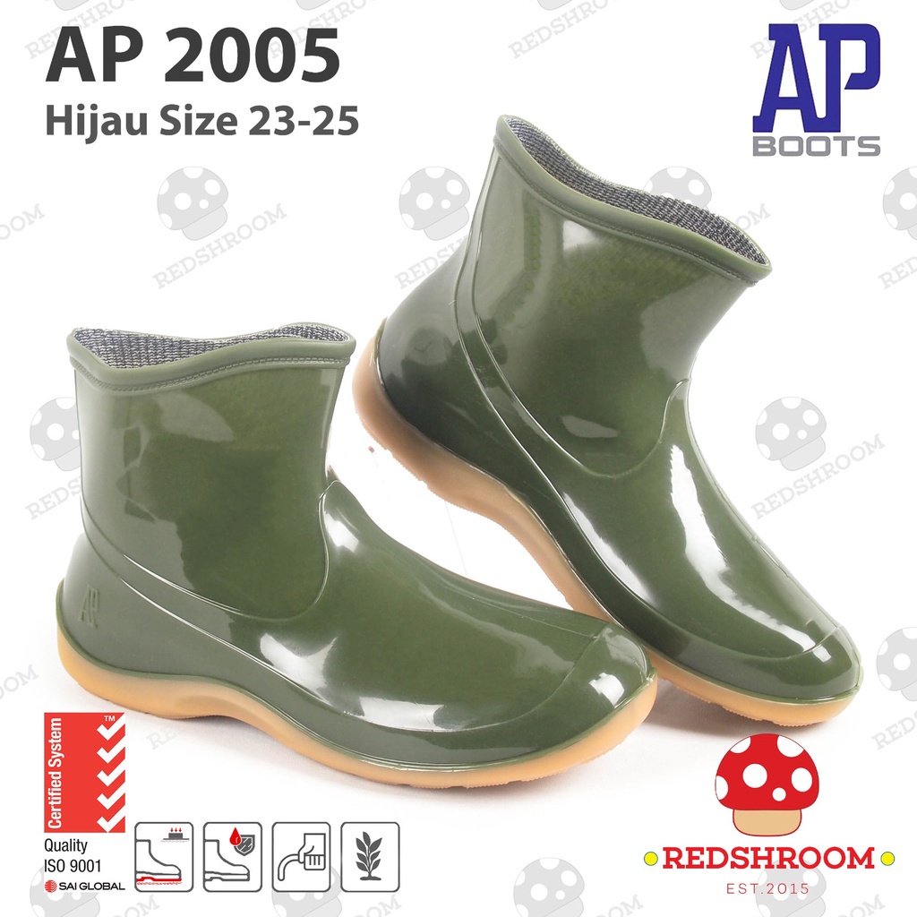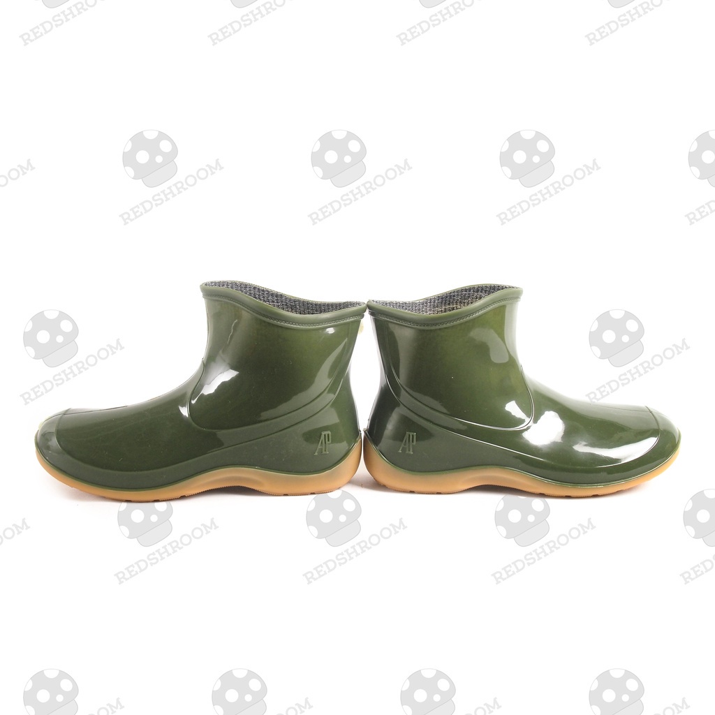 Sepatu Boot Pendek AP 2005 Hijau Glossy AP Boots Fashion Wanita Karet Anti Slip dan Air Lokal Perkebunan