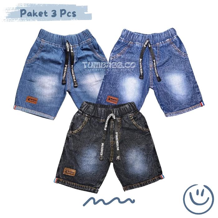 Paket 3 Pcs Celana Pendek Jeans Anak Laki-Laki Perempuan | Celana Pendek Anak Cowok Cewek Unisex Usia 1-11 Tahun Katun -