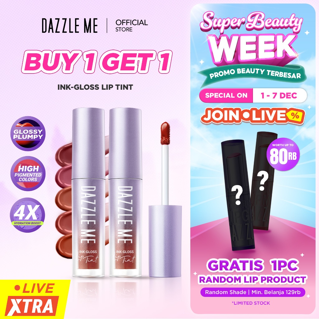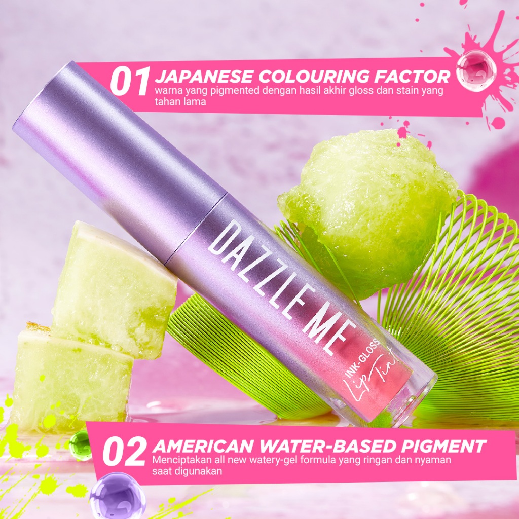DAZZLE ME Ink-Gloss - Lip Tint Lip Gloss Tahan Lama Glossy dan Plumpy Finish Waterproof Stained High Pigmented