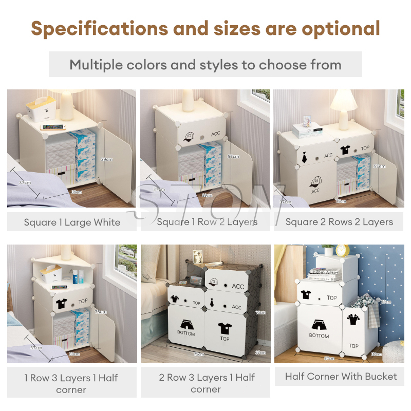 SALVO Lemari Samping Tempat Tidur Lemari Multifungsi Dengan Pintu Anti Debu Meja Kepala DIY Minimalis Lemari Aesthetic Putih Lemari Pakaian Plastik