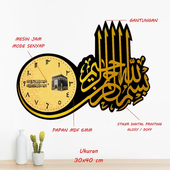 JAM DINDING KALIGRAFI ALLAH VINTAGE ISLAMI JUMBO BESAR DEKORASI DINDING UNIK AESTETIK MEWAH KAMAR - GOLD, JAM SAJA
