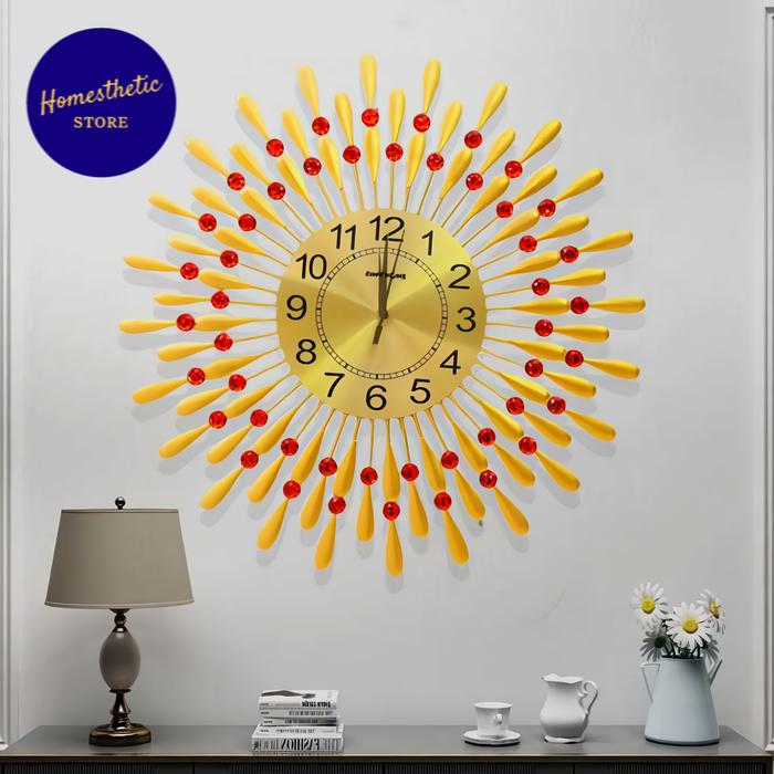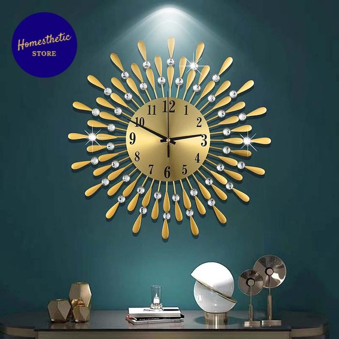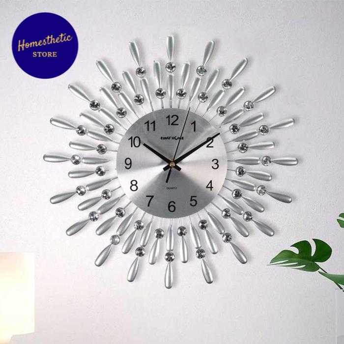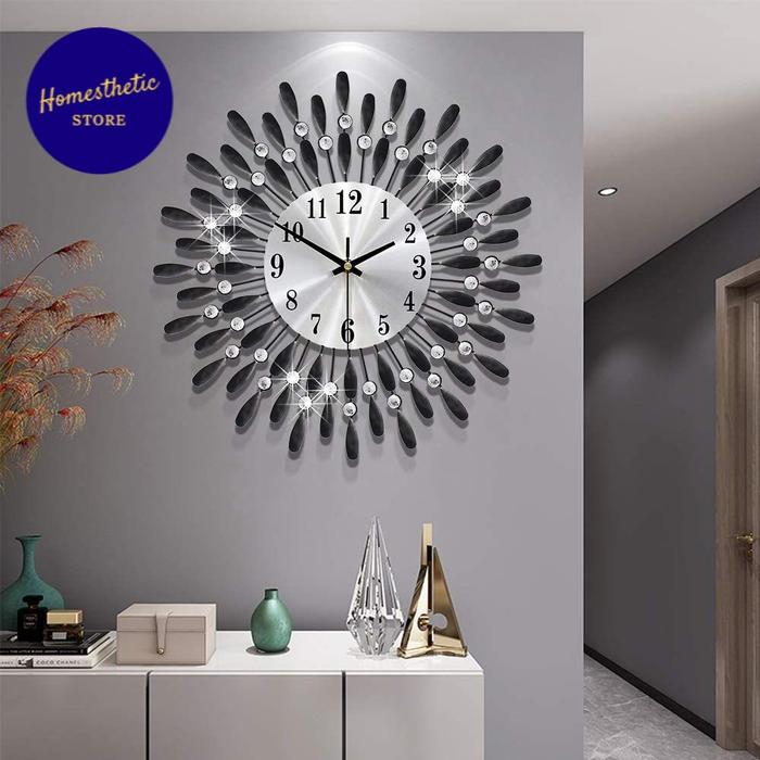 JAM DINDING 3D QUARTZ CREATIVE DESIGN MODEL LUXURY DIAM0ND 38CM SILVER - HITAM SILVER
