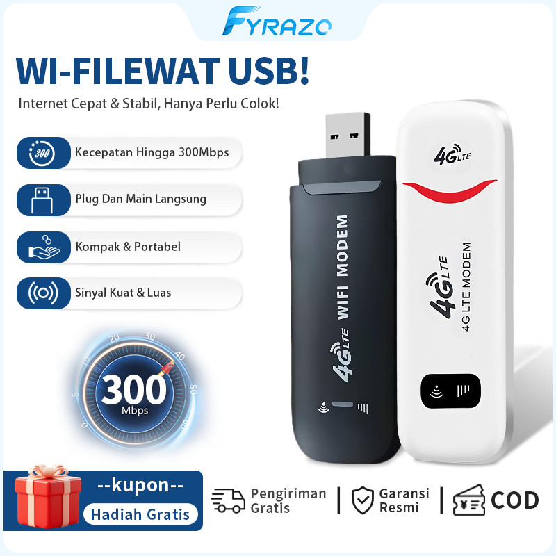 Fyrazo Modem WiFi 4G LTE Mini Portable Daya Tilie Pocket WiFi 150 Mbps Mendukung Semua Kartu SIM Operator untuk Perjalanan Putih Adaptor