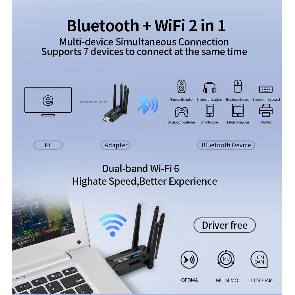 [EZTECH] AX940MAX Wi-Fi 6 600 Mbps 2.4/5GHz Dual Band + Bluetooth 5.4 2in1 USB Wifi Adapter/Dongle/Receiver