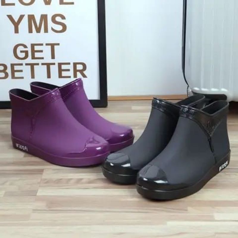 Sepatu Boots Korea Karet Jelly pendek Wanita Fashion Anti Air Hujan Lentur pendek 12 cm Glossy Simple Impor Mokaya Balance (558/688) /Size 36-40